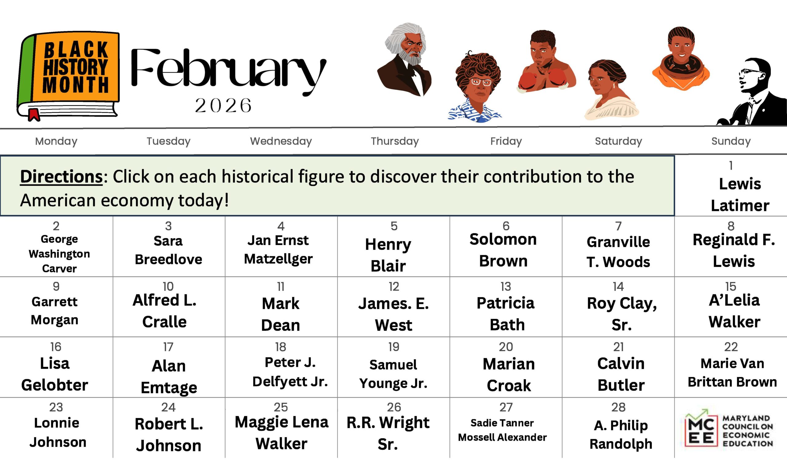 MCEE is pleased to offer the education community several resources for celebrating Black History Month. These resources celebrate the contributions of Black Americans as entrepreneurs, economists, and members of the business community.